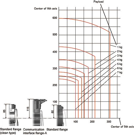 In calculation for an end-effector design, take into account not only an end-effector but also all loads to be applied to the flange such as workpieces, wiring and piping.