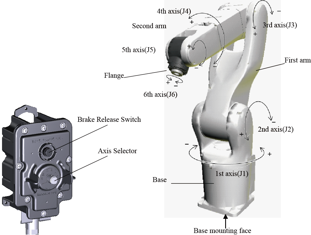For details, refer to "Displaying and Setting the Arm Maintenance Functions" of TEACH PENDANT OPERATION GUIDE, or "Releasing and Locking Brakes(6-axis)" of MINI PENDANT OPERATION GUIDE.