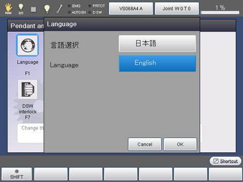 To change a language setting, change a setting on this screen and then you need to restart the controller.