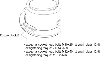 After that, firmly tighten the hexagonal socket-head bolts (on fixture blocks A) that have been temporarily tightened in Steps 4 and 5.