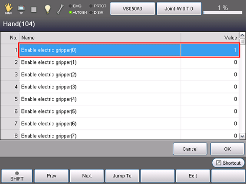 Press [F2 Parameter] to display the screen below. Select the hand number to be activated.