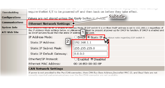 Edit the parameter of the subtitle [Ethernet Network Settings].