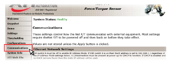 Click [Communications] on the welcome page.