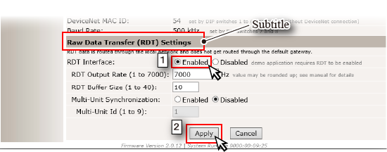 Edit the parameter of the subtitle [Raw Data Transfer (RDT) Settings].