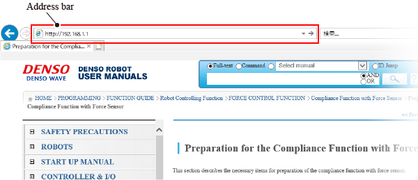 After starting the browser, enter "http://" and the IP address of the Net Box in the address bar, and press Enter key (In this example, enter "http://192.168.1.1").