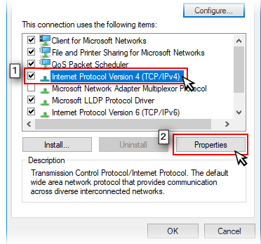 - Select [Internet Protocol Version 4 (TCP/IPv4)].