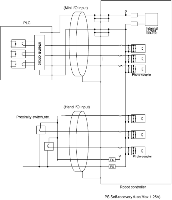 - In addition to PLCs, proximity switches and relay contacts can be directly connected to the input terminals of the robot controller.