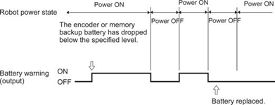 This signal tells the external device that the voltage of the encoder or memory backup battery has dropped below the specified level.