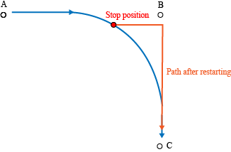the robot that stopped at D will run toward B after restarting but the robot that stopped at E will run directly to C, instead of moving toward B.