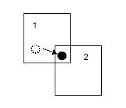 - If the areas of interference overlap, as shown in the figure below, error occurs first upon the robot end starting within the area 1 enters in the area 2. However, this can be avoided by aid of the method given above.