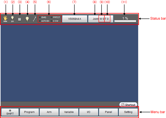 Various screens can be displayed on the liquid crystal screen by using keys, buttons and switches on the teach pendant.