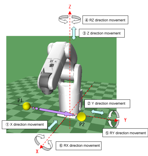 Press moving direction keys as required while pressing the deadman switch to move robot to the position to be set as P2.