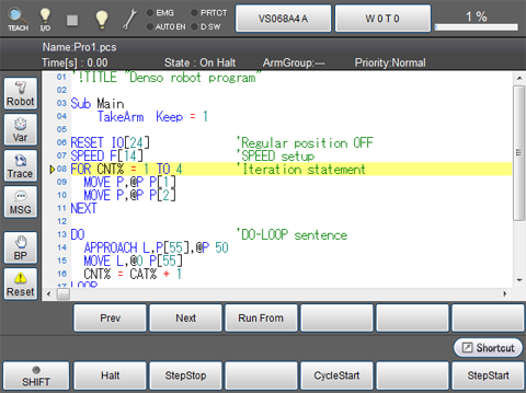 - Line cannot be specified for teach check on the mini-pendant. Operation procedures: the following operation procedures are common to single-cycle check and step forward check.