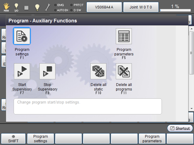 Press [F6 Aux] to display the following [Auxiliary Functions - Program] window.