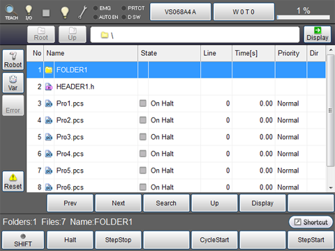 Press [F1 Program] in teach check mode to display the following [Program list] window.