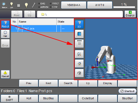 Display 3D image of the robot during the machine lock. For information about operation keys, refer to " Displaying Current Position Information and 3D Image of Robot ". |