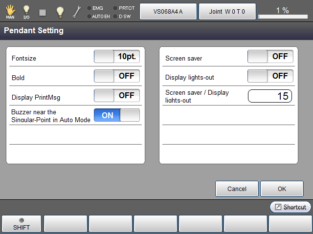Operation path : [F6 Setting] - [F3 Pendant and Panel] - [F2 Pendant Setting]