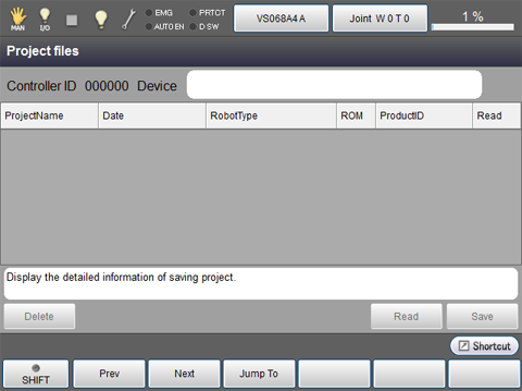 Operation path : [F6 Setting] - [F6 Data Read and Write] - [F1 Project Read and Write]