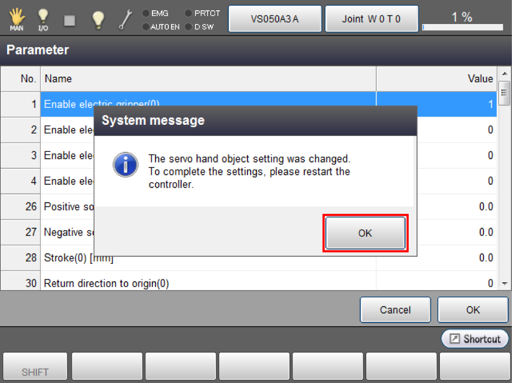 Press [OK] then reboot the robot controller.