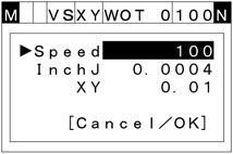 Press [3:SPEED] to call up the speed setting screen shown below where you can change the robot speed.