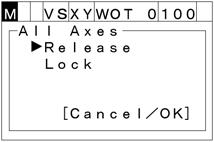 To switch the selected joint brake between Release and Lock status, press [OK].