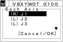 Choose an arbitrary joint with the up and down cursor keys, then press [OK]. (You can vertically scroll the screen with those keys.) Either of the following windows will appear.
