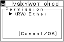 Choose "Permit" with the up and down cursor keys and then press [OK]. The Permission screen appears as shown below.
