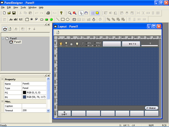 Select the necessary parts from the Parts tool bar and arrange them in the Layout window to create the TP panel screen.