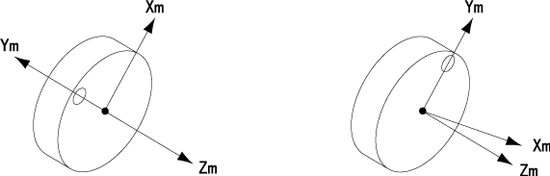 Zm: Normal axis on the center of the flange surface Ym: Axis passing through the flange center and orientation key hole Xm: Axis passing through the flange center and crossing Zm and Ym at right angles |