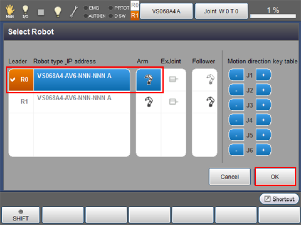 Press the robot selection button on the top of the window to display Select Robot window shown below.