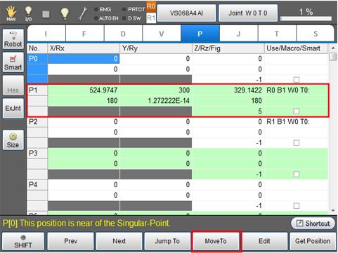 Choose a variable that the robot moves to, and then press [F4 MoveTo].