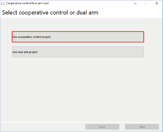 From the start menu, select "Cooperative control Dual arm tool". Do the necessary settings by following the start-up wizard.