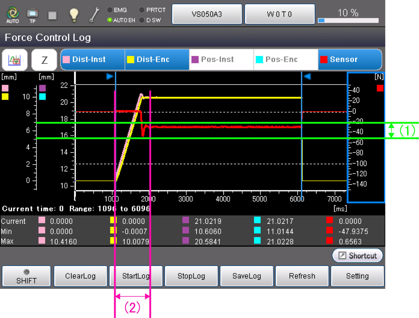 Refer to "Acquiring, Displaying and Saving Force Control Log" for about the force control log.