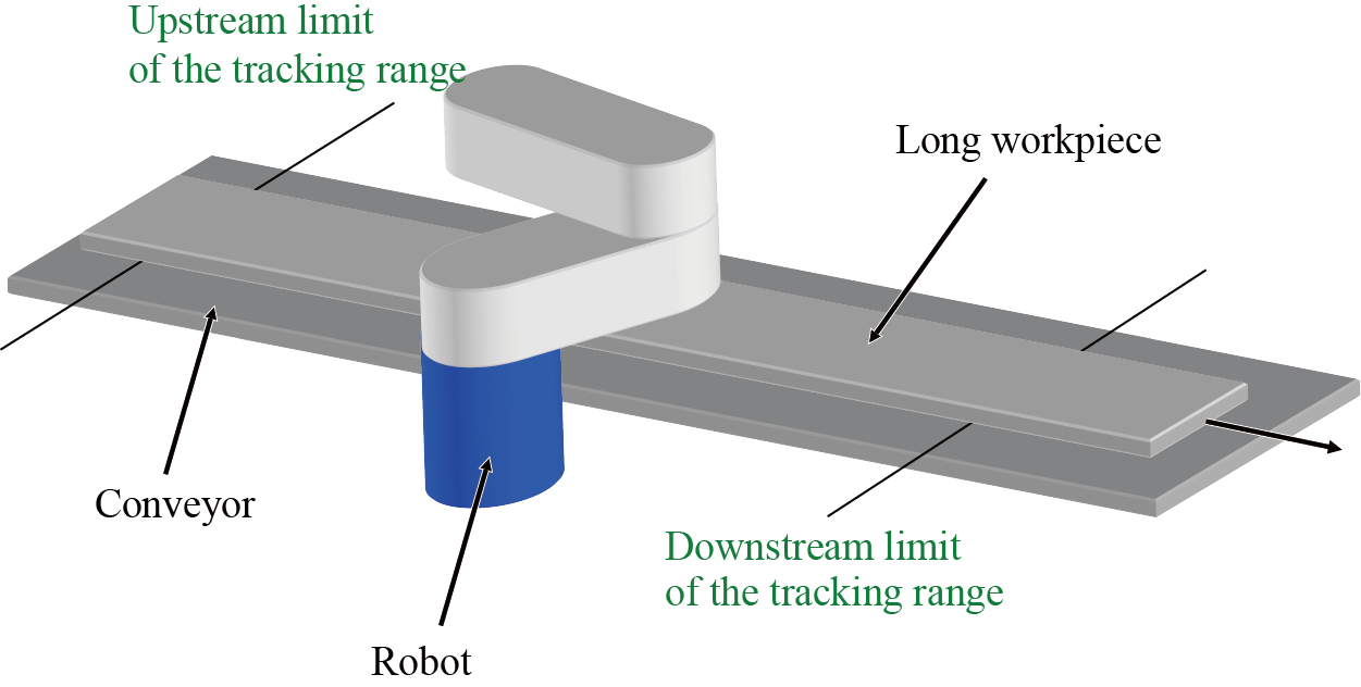 In the default setting, an error occurs when the tracking-target work passes the downstream limit of the tracking range.