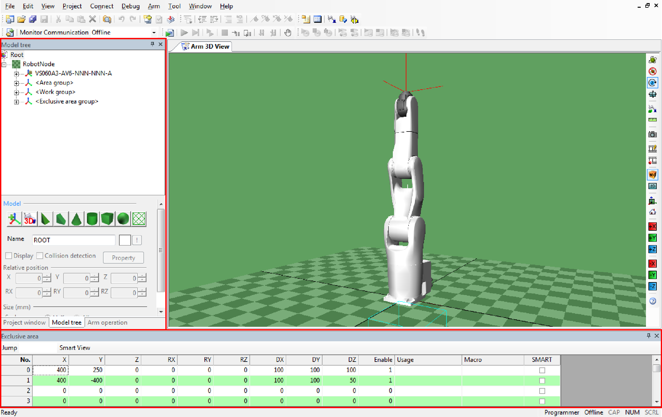You can check the exported exclusive control data by selecting the menu [Arm] - [Display virtual fence / exclusive control data].