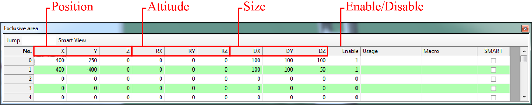 From Exclusive area window, set the size and position of an exclusive model.