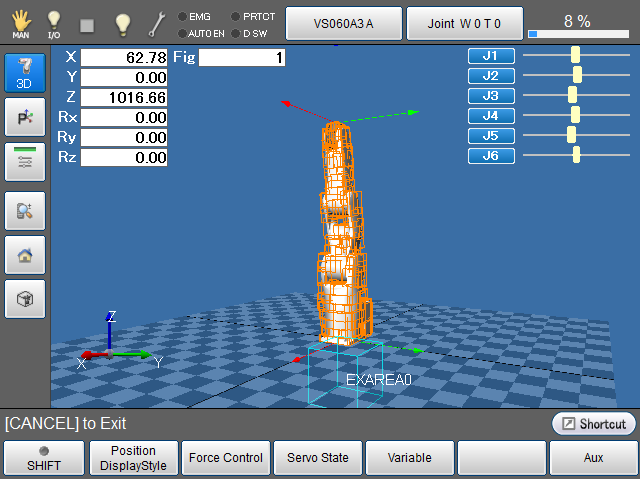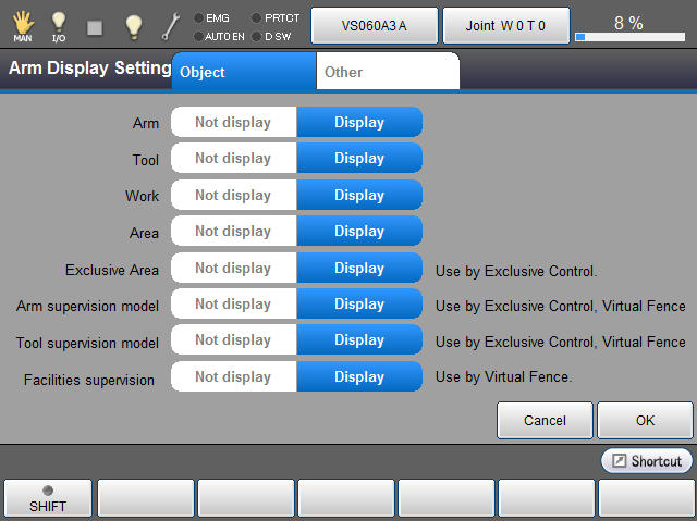 Operation path : [Menu] – [View] – [Arm coordinate] – [Exclusive area]