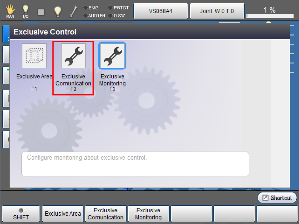 Operation path : Basic screen - [F2 Arm] - [F6 Aux] - [F11 Exclusive Control] - [F2 Exclusive Comunication]