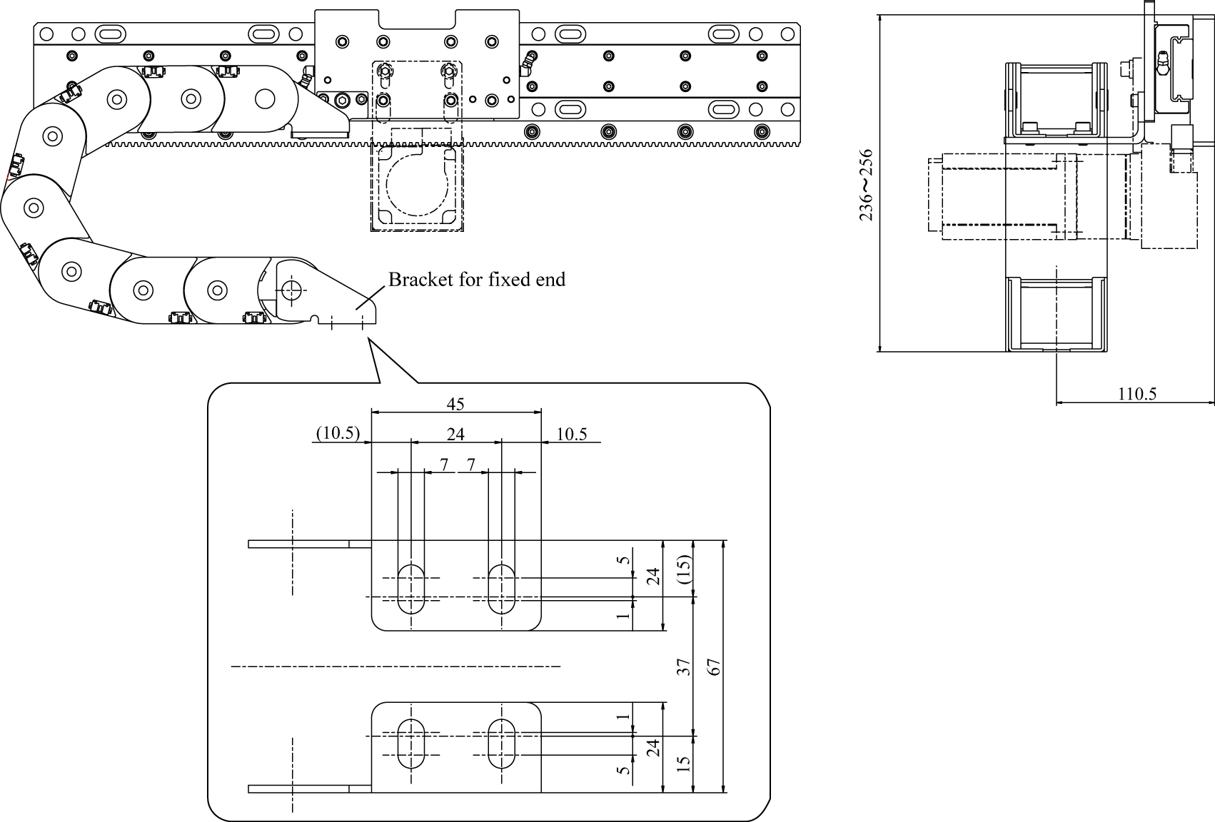 The figure above shows the diagram of the cableveyor mounting set for left-side mounting type. For the right-side mounting type, reverse the diagram.