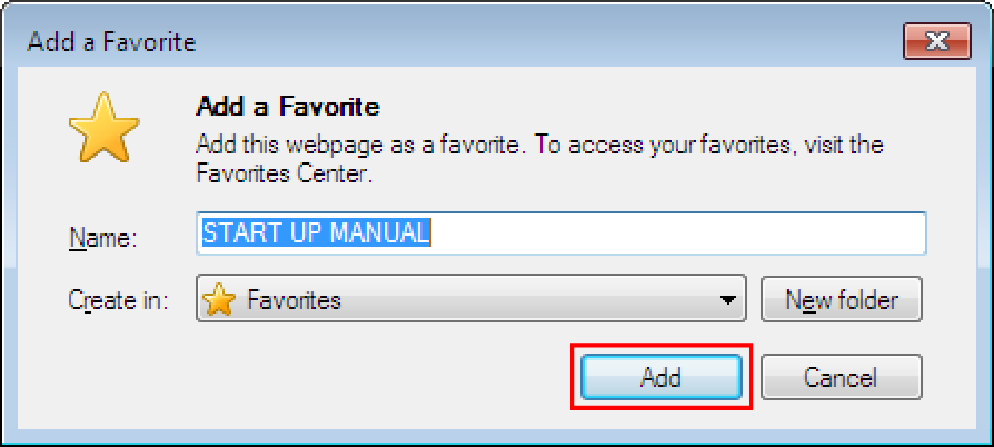 On the Add a Favorite dialog, enter a name, select where the favorite is created, and then click Add button.