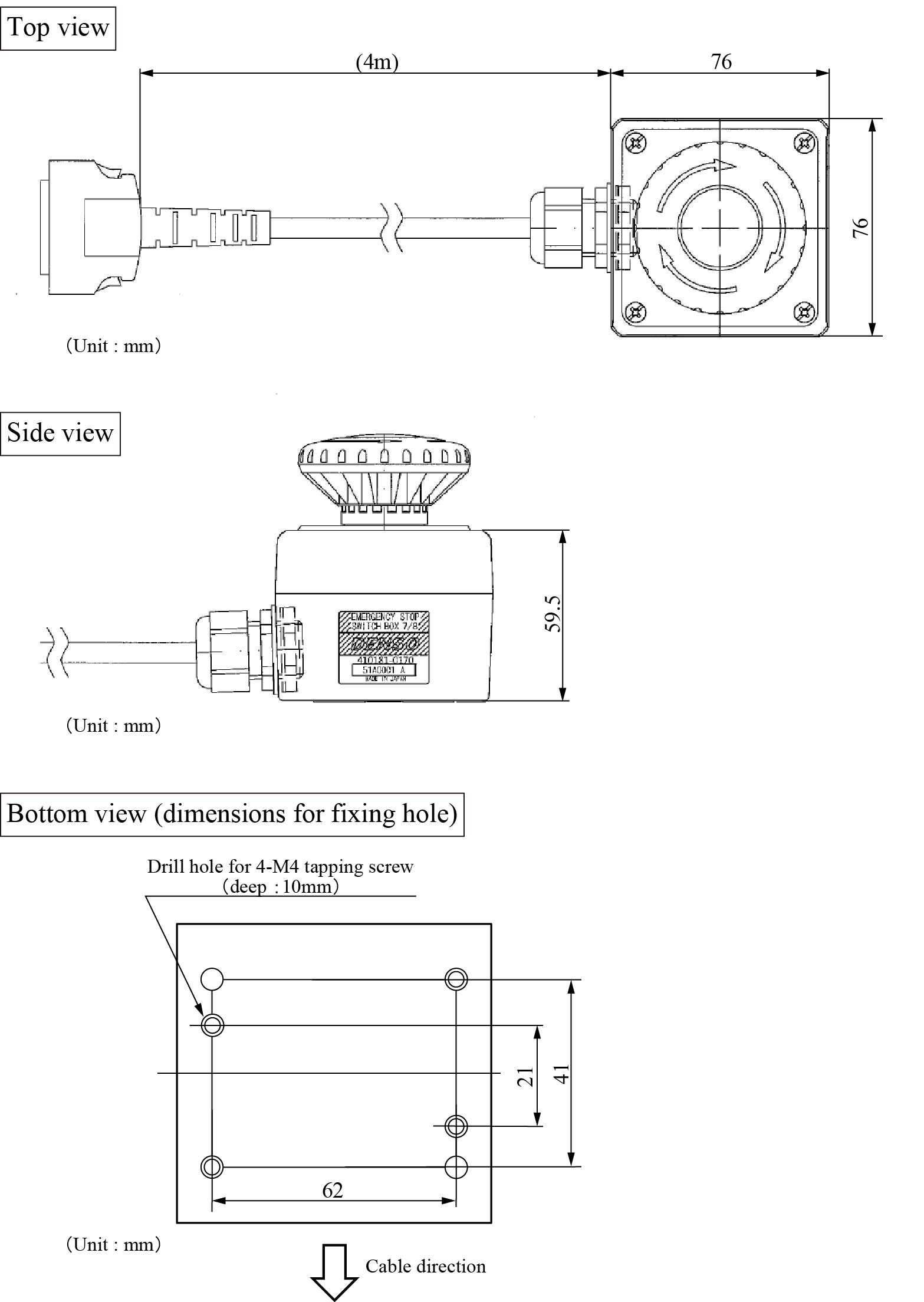 The external dimensions of emergency stop switch box are shown in the figure below.