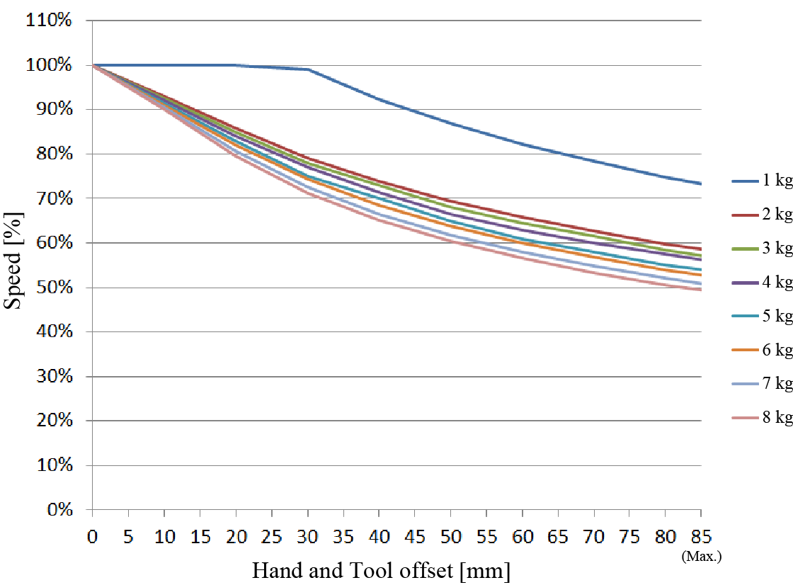 | Total mass of hand or tool ≦ Max. allowable payload (incl.work-piece). (Mass of payload that you have preset) |