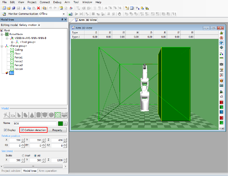 The robot type (VS, HS, etc.) of the monitoring target robot will be the one that has been specified at the creation of the project. A robot model is automatically created. - Tool