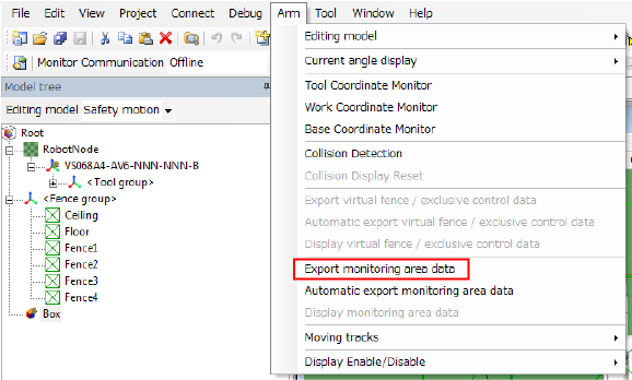 To confirm the monitoring area data being output, from the Menu bar, click [Arm], click [Display monitoring area data].
