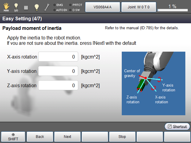 Thus, mass of payload and payload moment of inertia Iz (around the Z-axis) can enter the values without entering values directly at Step3, Step4.