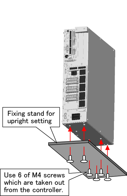 Fix the controller to the facilities' floor with 6 pieces of M6 bolts, and to the wall with 3 pieces of M6 bolts.