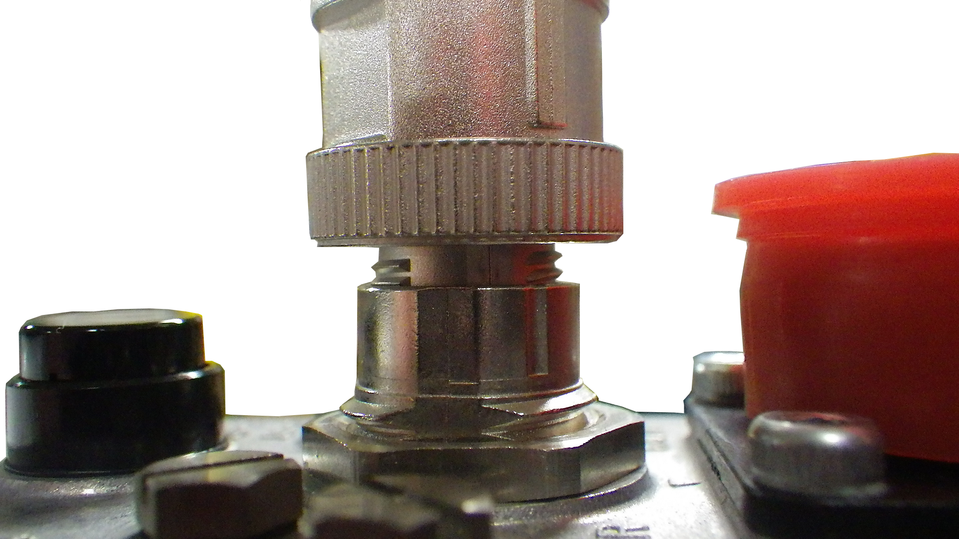 Turn the male connector (a connector on the cable side) to the clockwise for 180 degrees (1/2 rotation) to complete. About two threads remains visible though, it is normal condition.