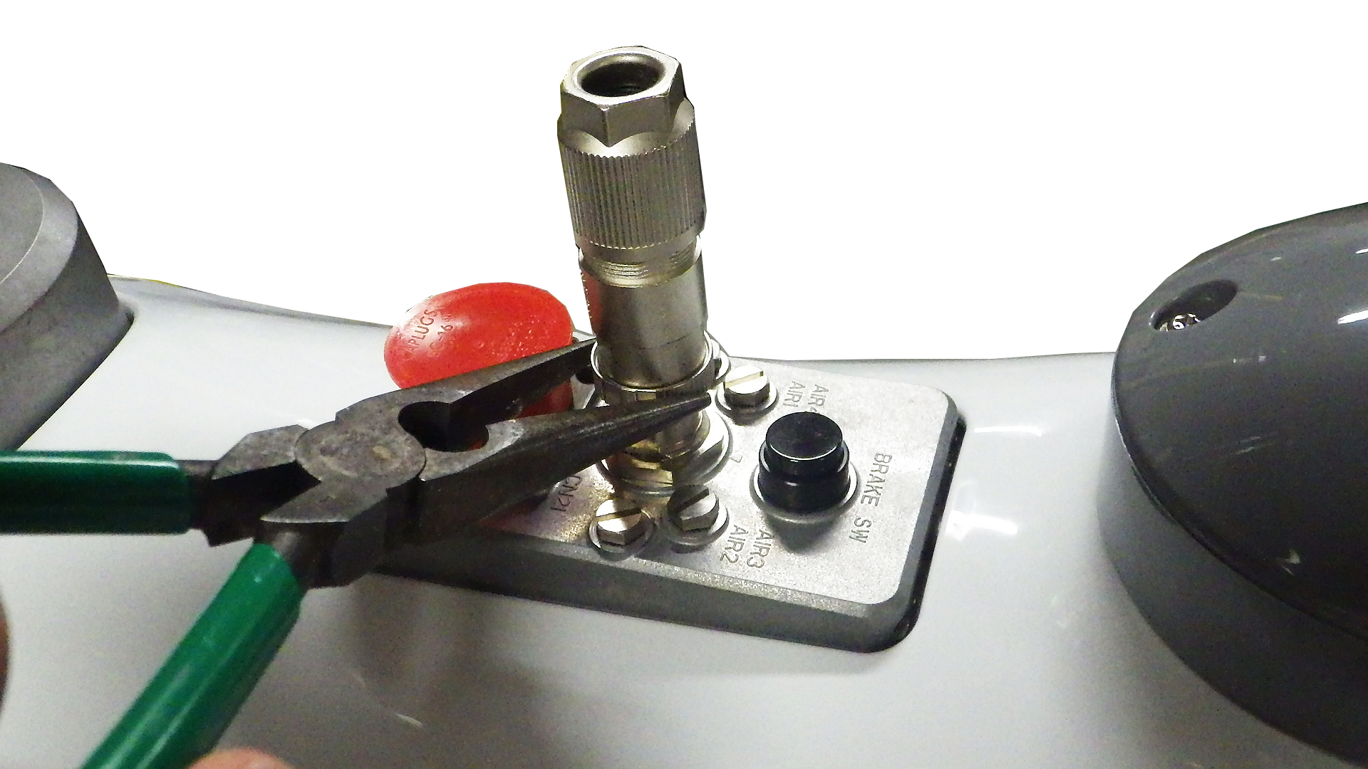 Do not tighten them with a plier or a long nose plier. Doing so, strong force may apply to the screw part, this may degrade the waterproof performance and damage to the terminal. Tightening process must be done by hands or a wrench (torque wrench).