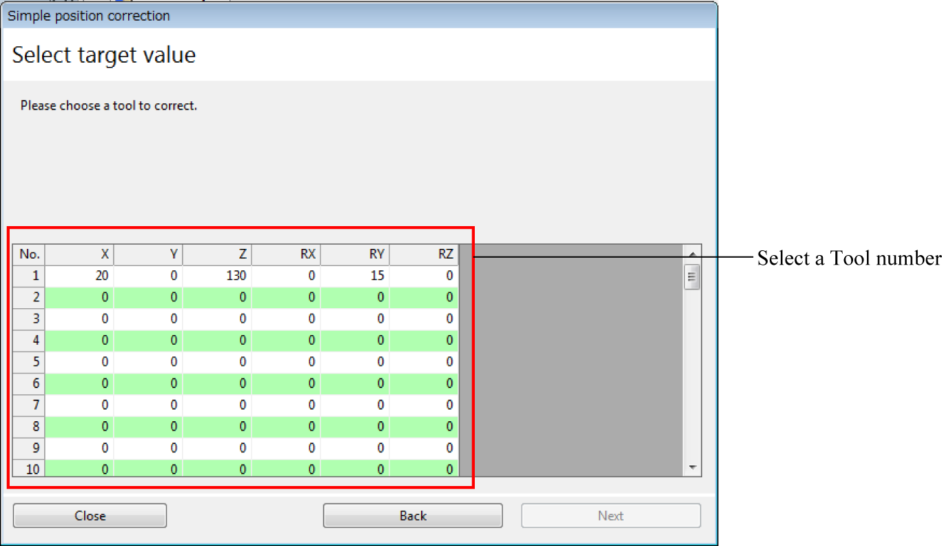Once a message "Are you sure to back up current data before correction?" is displayed, click [OK] to backup the currently selected Tool coordinate data.