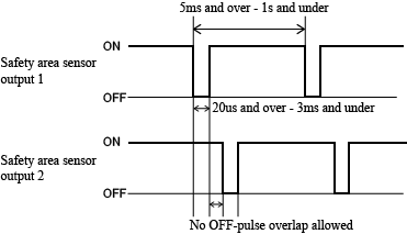 - Sensor-connectable-input sees if OFF pulse (turns to Low level instantaneously during the state of High level) is entered periodically to check if the functions of devices connected work normally. If OFF pulse is not entered, it may result in an error, select the safety sensor which meets the necessity measures for OFF pulse output.